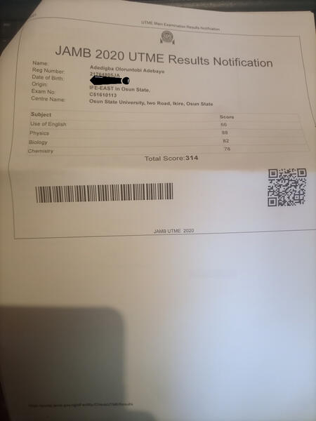 Even Mr. Oloruntobi Adedigba, a close student of mine, scored 314 in his UTME exam in 2020..